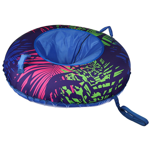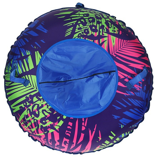 Тюбинг изготовлен из высокопрочной ткани. Оснащен ручками, за которые удобно держаться во время катания, и буксировочным тросом, который помогает в переноске. Посадочный клапан снабжен молнией.