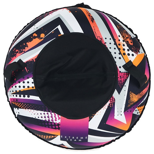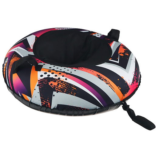 Тюбинг изготовлен из высокопрочной ткани. Оснащен ручками, за которые удобно держаться во время катания, и буксировочным тросом, который помогает в переноске. Посадочный клапан снабжен молнией.