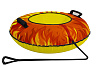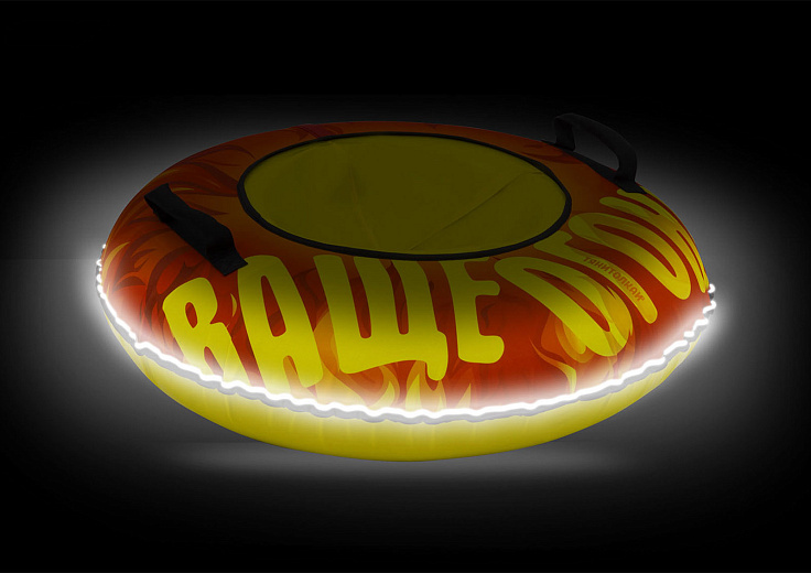 Тюбинг-ватрушка ТЯНИТОЛКАЙ изготовлен из плотного влагозащитного материала OXFORD 600D с водоотталкивающей пропиткой, который устойчив к морозам до 25 градусов. Низ тюбинга изготовлен из тента, глянцевая поверхность материала позволяет тюбингу-ватрушке отлично скользить по снежной поверхности. Для удобного катания предусмотрены ручки-держатели и буксировочный трос из усиленной стропы. Тщательно прошитые плотной лавсановой нитью швы гарантируют долгий срок службы. Прочное травмобезопасное сиденье имеет усиленное дно, а также дополнительно имеет стропу под сидением, которая снижает нагрузку и позволяет пользоваться тюбингом несколько сезонов. Тюбинг укомплектован усиленной автомобильной камерой. С подсветкой.