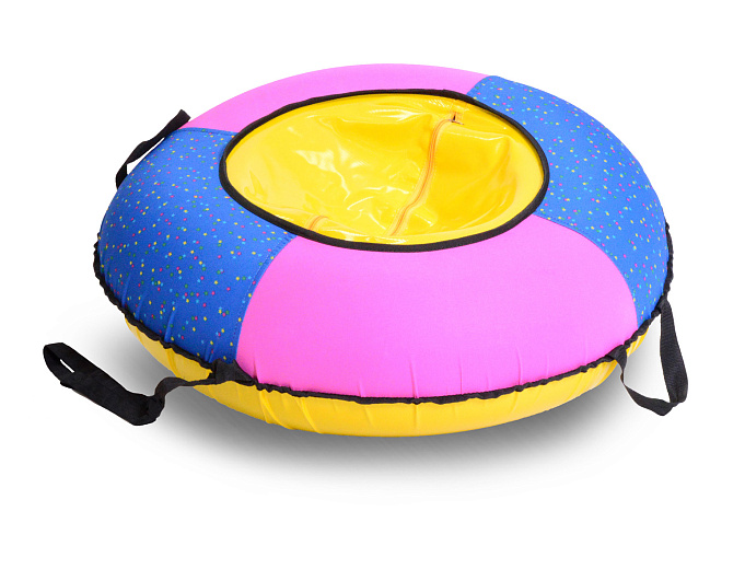 Тюбинг-ватрушка Тяни-толкай изготовлен из прочного тента, который устойчив к морозам до 25 градусов , глянцевая поверхность материала позволяет тюбингу-ватрушке отлично скользить по снежной поверхности.