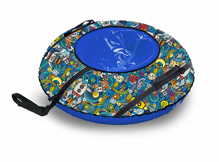Тщательно прошитые плотной лавсановой нитью швы гарантируют долгий срок службы. Прочное травмобезопасное сиденье имеет усиленное дно, а также дополнительно имеет стропу под сидением, которая снижает нагрузку и позволяет пользоваться тюбингом несколько сезонов. Тюбинг укомплектован усиленной автомобильной камерой.